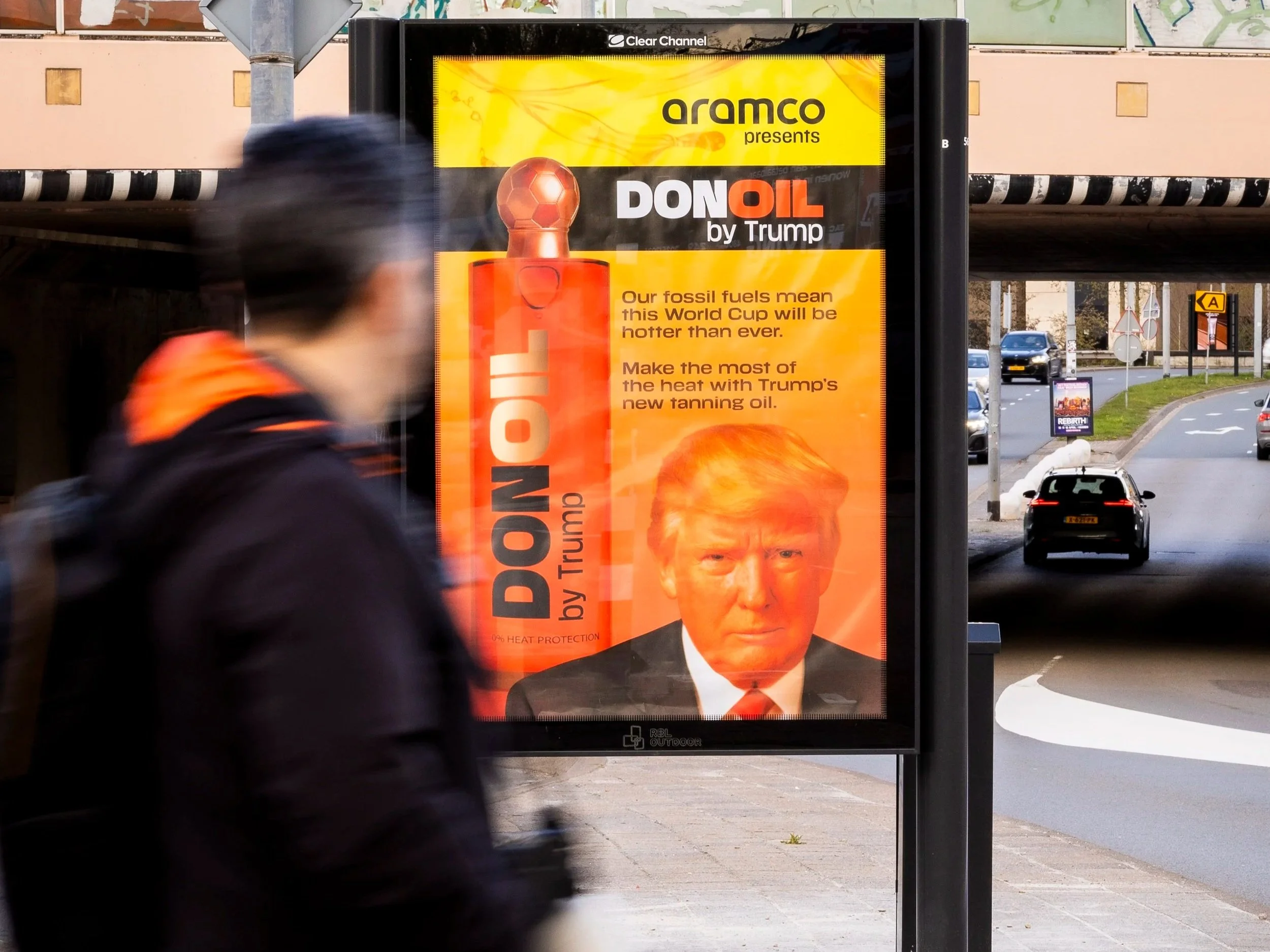 Oil giant Aramco has joined with likeminded allies to launch a new product line aimed at travelling World Cup fans. The FootbOil range of tanning oils is fronted by Gianni Infantino and Donald Trump and designed so that supporters can thrive in the World Cup heat this summer.