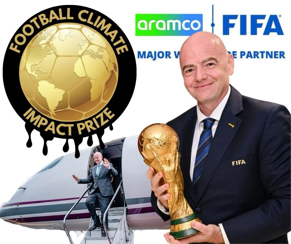 While Fossil Free Football realises that Mr Infantino is preoccupied with his own prizegiving ceremony, it is sure that his Qatari private jet will be on hand to collect the Football Climate Impact Prize he so richly deserves.