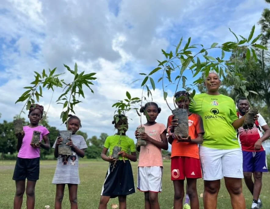 GOALS Haiti is tackling the climate crisis by integrating environmental education with football and community leadership. Youth participate in tree planting, recycling, and cleanups, while learning sustainability through the Purposeful Play curriculum. Additionally, GOALS offers natural disaster preparedness training and women’s leadership programs focused on climate crisis awareness and gender. These initiatives empower women and girls to take active roles in addressing climate challenges and promoting resilience within their communities, ensuring a more sustainable and inclusive future.