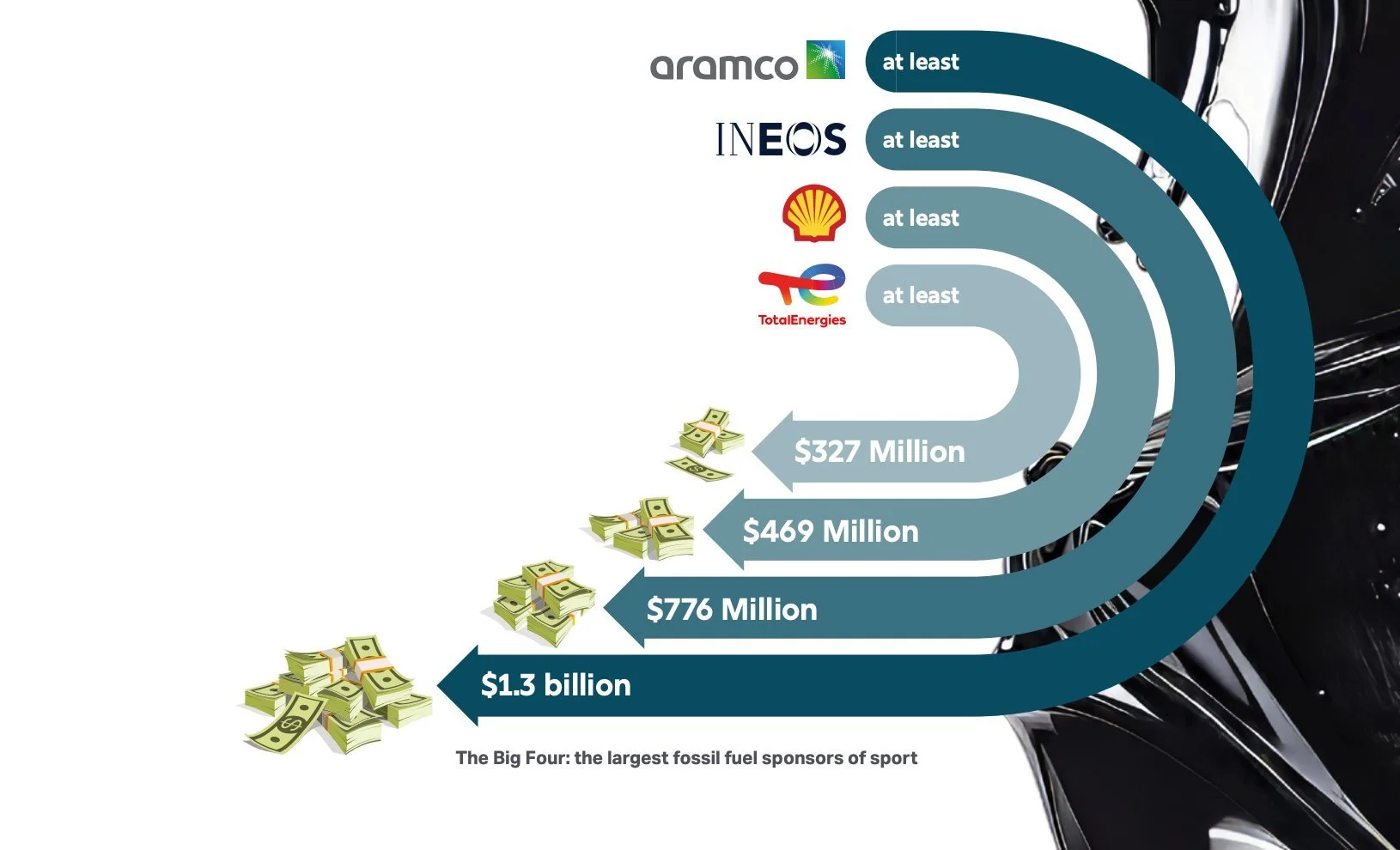 The study finds high-profile sports with the most deals are football, motor sports, rugby union and golf, with key sponsors including Aramco ($1.3 billion), Shell ($470 million), TotalEnergies ($340 million) and petrochemicals giant Ineos ($777 million).